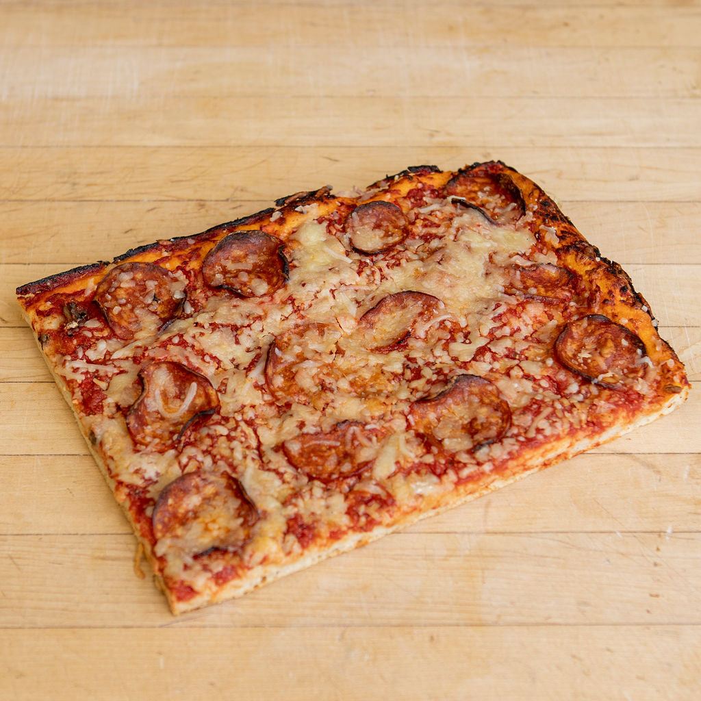 Crafted with a perfectly baked golden crust, this Pepperoni Pizza is topped generously with savoury tomato sauce, grated cheese, and layers of premium pepperoni. The balanced blend of spicy pepperoni and rich cheese delivers a classic flavor profile appreciated by pizza connoisseurs. Ideal for those seeking an authentic and satisfying pizza experience, each slice offers a harmonious combination of texture and taste.