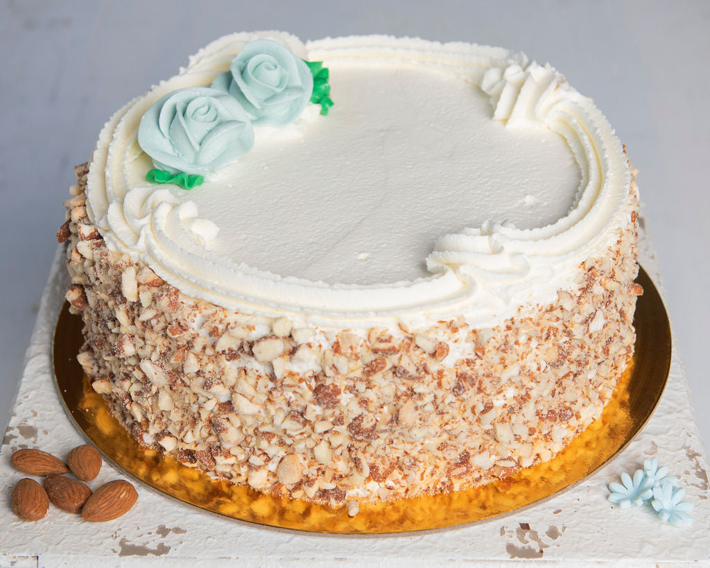 Dive into Tre-Gusti, where our fluffy genoise sponge gets a gentle splash of tum syrup. Inside, you'll find three homemade Italian custards—vanilla, chocolate, and hazelnut—playing together with fresh whipped cream and crunchy roasted almonds. It’s a tasty trio guaranteed to bring a smile with every bite!
